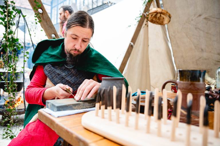 »S tovrstnimi dogodki želimo obiskovalcem približati ta zgodovinski čas in jim pokazati, kako so ljudje takrat živeli. Seveda se ob tem zabavamo in družimo, hkrati pa se marsikdo nauči kaj novega, kot je recimo pletenje, izdelovanje pasov in ostalih izdelkov,« je povedal eden od rokodelcev Gregor Osredkar.