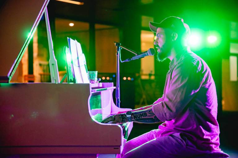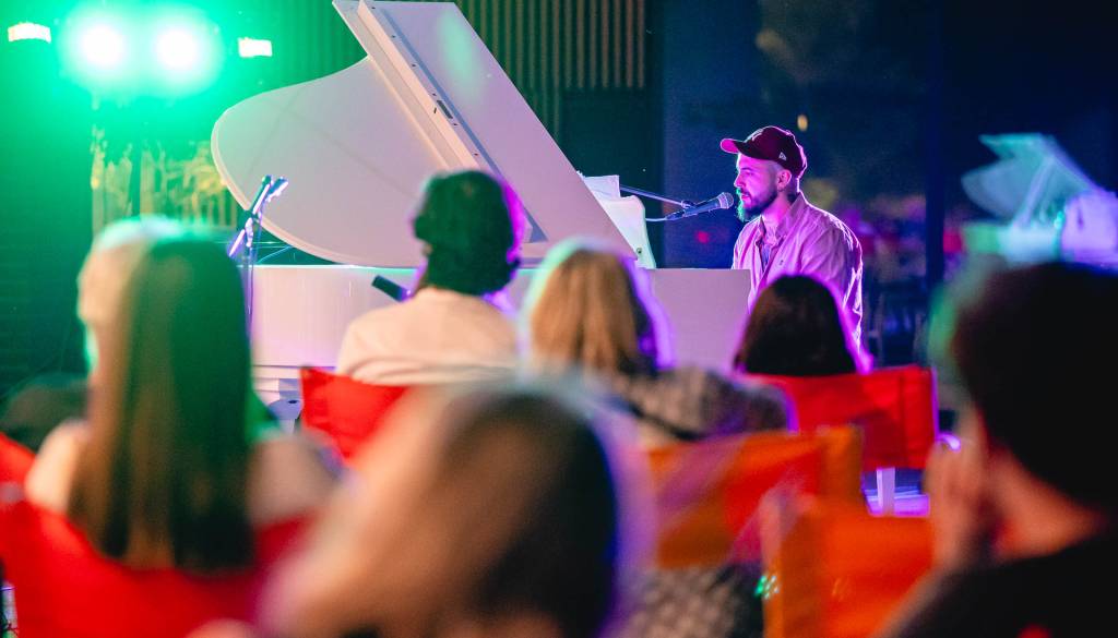 Sobotni večer je minil v znamenju koncerta. Na odru sta navduševala makedonski pevec in pianist Viktor Pecov, ki ustvarja pod umetniškim imenom Chicovico in je s svojim vokalom v preteklih tednih večkrat razvajal tudi goste lokalov na Poštni ulici.