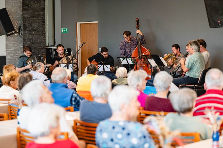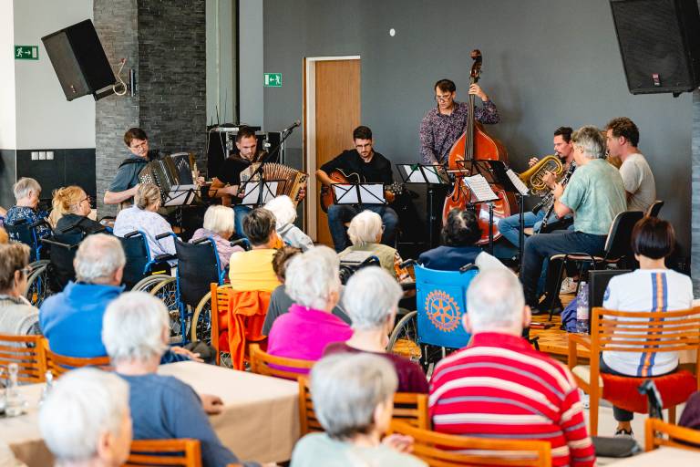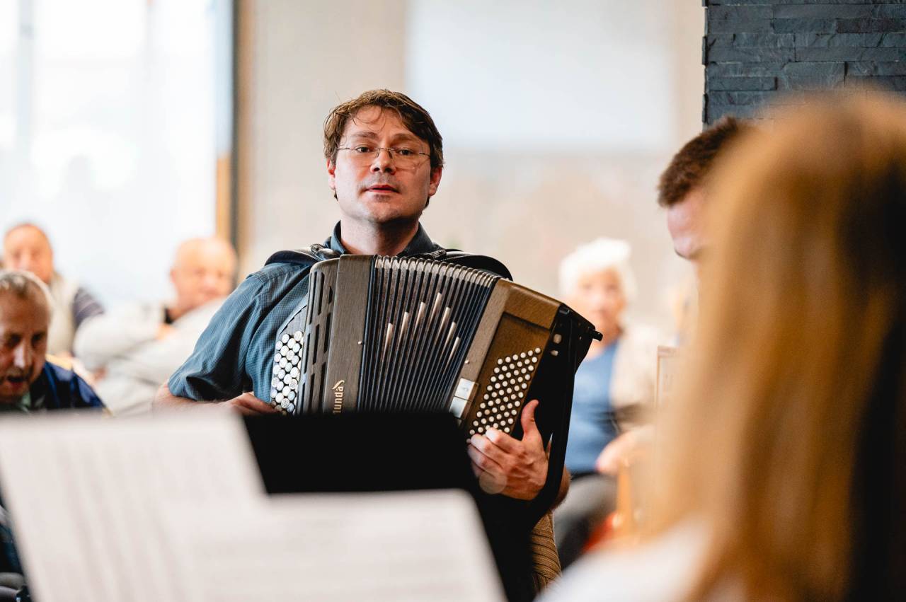 Repertoar je bil sestavljen iz skladb, značilnih za druženja naših severnih sosedov še preden so se glasbeni valovi pretakali po žicah do velikih zvočnikov. Priča smo bili pristnemu nastopu, ki je marsikateremu starejšemu občanu zagotovo polepšal popoldne.