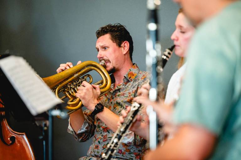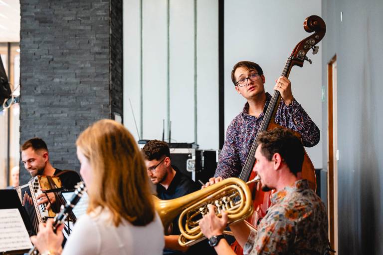 Tokrat je klasična glasba odzvanjala za zidovi Doma Danice Vogrinec. Za inštrumente so poleg Bekavaca poprijeli še Aljaž Beguš, Lara Korenjak, Peter Prohart, Kristjan Štelcer, Nejc Merc in Janez Krevel.