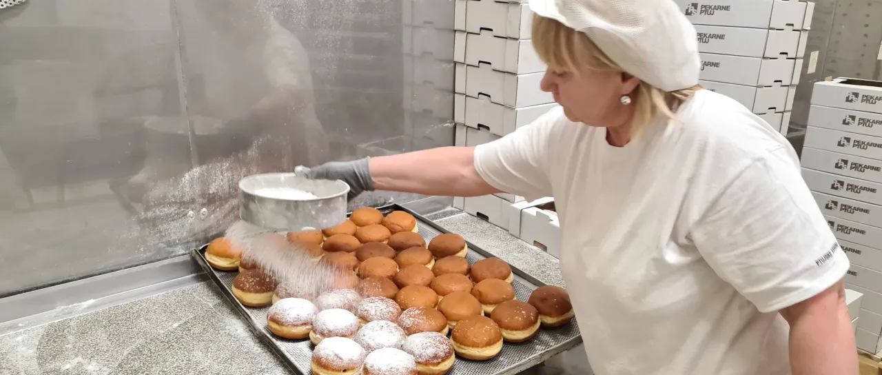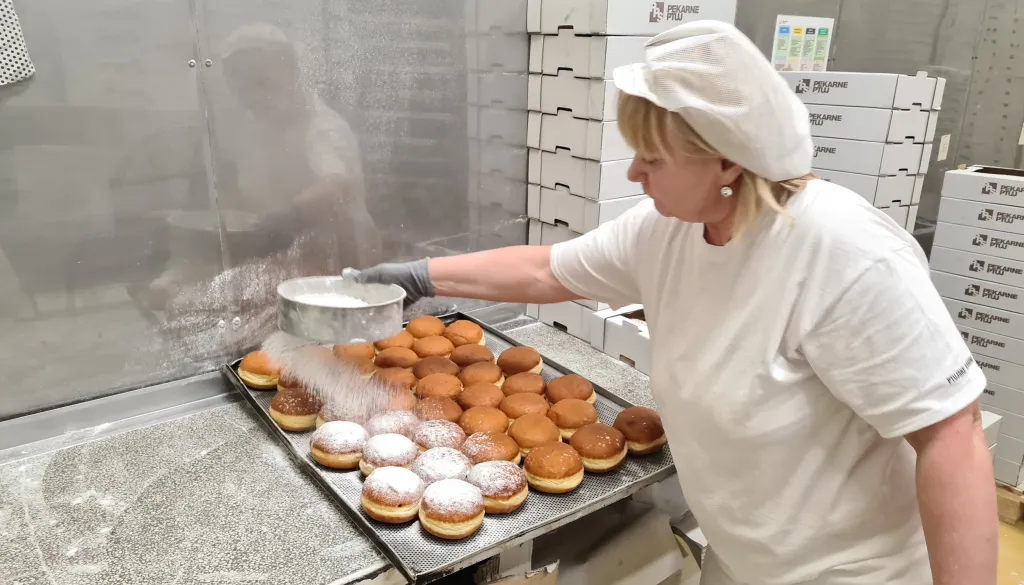 Skozi njihovo proizvodnjo nas je popeljala Sabina Pišek, tehnologinja z impresivnimi 25 leti izkušenj, ki je s ponosom predstavila, kaj vse je potrebno za pripravo priljubljenih krofov, ki osvajajo srca in brbončice mnogih.
