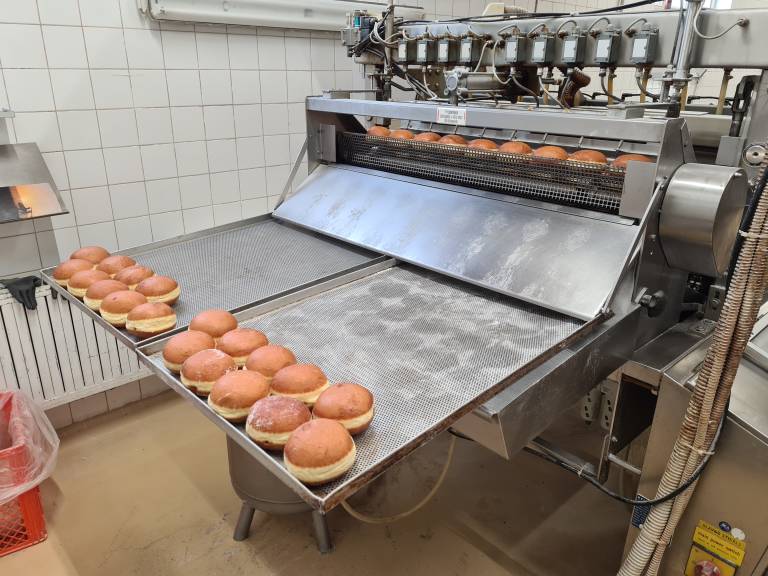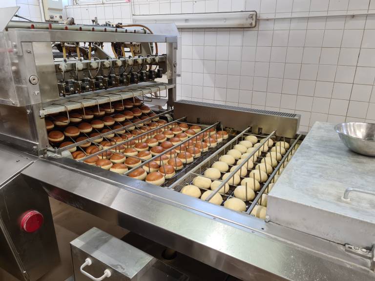 Pri tem jim je v veliko pomoč avtomatska obračalna friteza, ki zmore speči do 1200 krofov na uro.