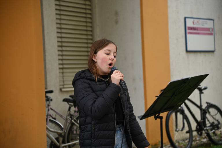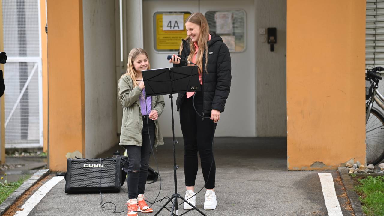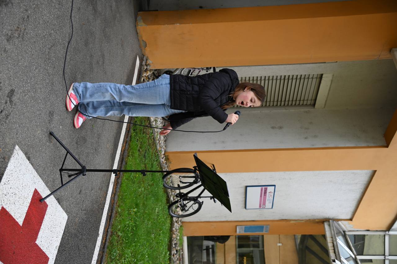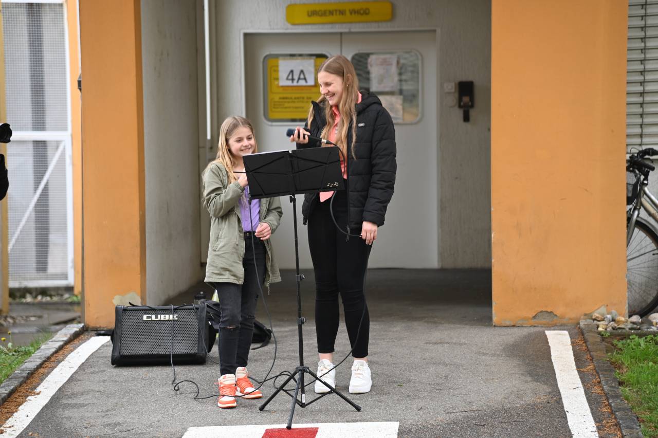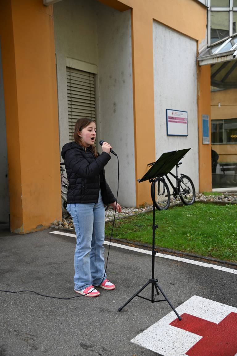 Mladi pevci so pod mentorstvom profesorja petja in tenorista Sergeja Ruprehta prepevali slovenske pesmi in širili dobro voljo med poslušalce, predvsem dojenčke in njihove mamice, najmlajše bolnike iz pediatrije ter vse mimoidoče.