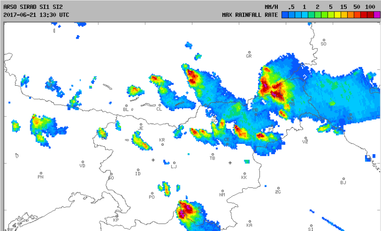Vzhod Slovenije je okoli 15. ure zajelo močnejše neurje s točo, nevarnost slednje pa preti tudi v ostalih predeli Slovenije.