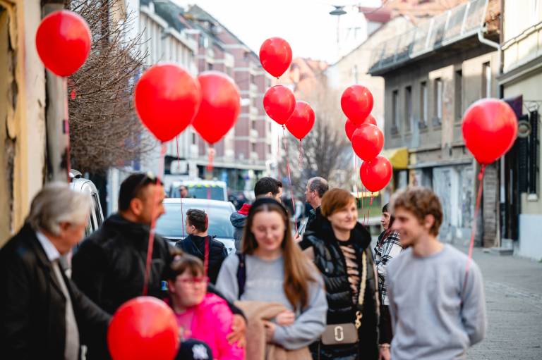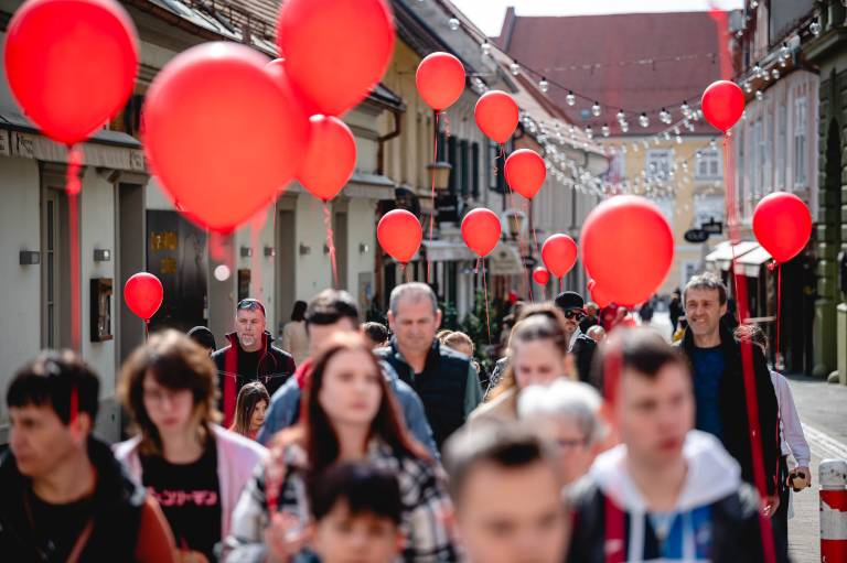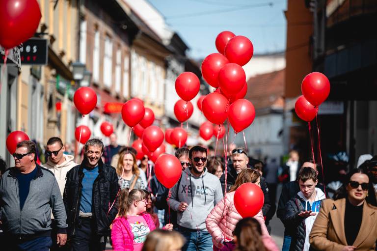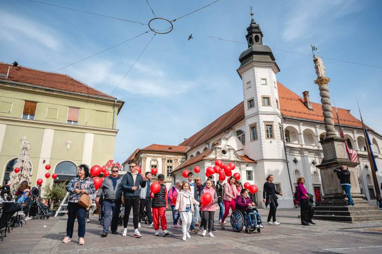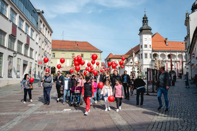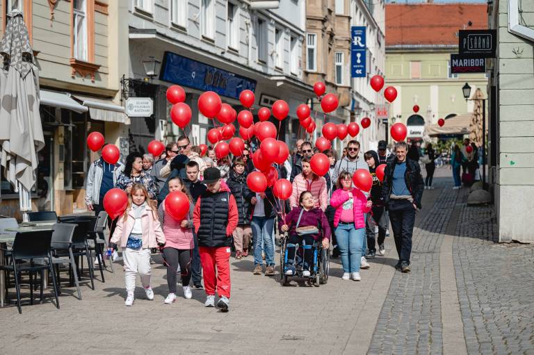 Aktivnosti, ki jih vodi ustanoviteljica zavoda Petra Greiner Merlak, so se pričele z rojstvom njene drugorojenke in od takrat vsako leto povezujejo skupnosti v znak solidarnosti. V četrtek so se sprehodili po Gornji Radgoni, včeraj po Ormožu, danes pa so rdeči baloni zavzeli tudi mariborske ulice.