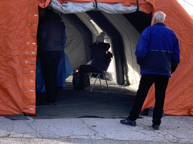 Zato so pri dvorani Tabor namestili tudi prenosna stranišča, za čakajoče na test pa skrbijo tudi s toplim čajem. V vrsti je zaradi dolge čakalne dobe zaznati tudi nekaj nelagodje, zato si čas krajšajo s kajenjem in tudi branjem knjig.