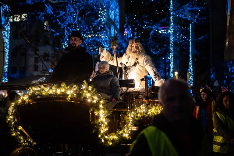 Dedek Mraz že vse od 9. decembra, ko se je s Pohorja spustil v dolino, na kočiji s pravljičnim spremstvom obiskuje otroke v vrtcih in šolah, tokrat pa se je odpravil na zadnjo vožnjo po praznično okrašenih ulicah Maribora.