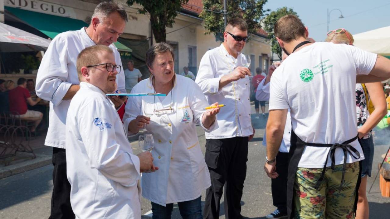 Pred lendavsko Mestno hišo je bograč kuhal tudi zmagovalec oddaje MasterChef Slovenija 2019 Anže Kuplenik v družbi sotekmovalke Špele Golob.