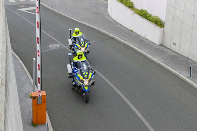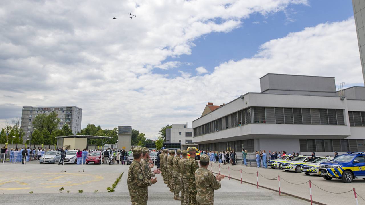 V času preleta patrulje so policije v neposredni bližini bolnišnic, tudi pred Univerzitetnim kliničnim centrom Maribor, prižgale modre luči, z aplavzom pa so se poklonili zdravstvenim delavcem.