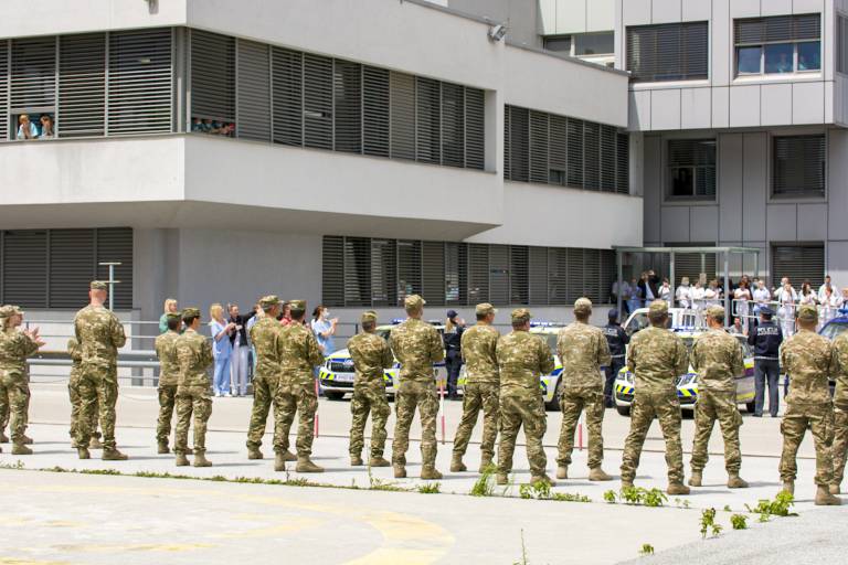 Ministrstvo za obrambo priznava, da smo k dobri epidemiološki sliki prispevali vsi, a je bilo najtežje breme predvsem na plečih zdravstvenih delavcev – v zdravstvenih ustanovah univerzitetnih kliničnih centrov Ljubljana in Maribor, Kliniki Golnik in Splošni bolnišnici Celje, na 16 vstopnih točkah za testiranje potencialno okuženih, po domovih za starejše, v 13 zdravstvenih ekipah, oblikovanih za pomoč osebju v domovih za starejše, med epidemiologi …