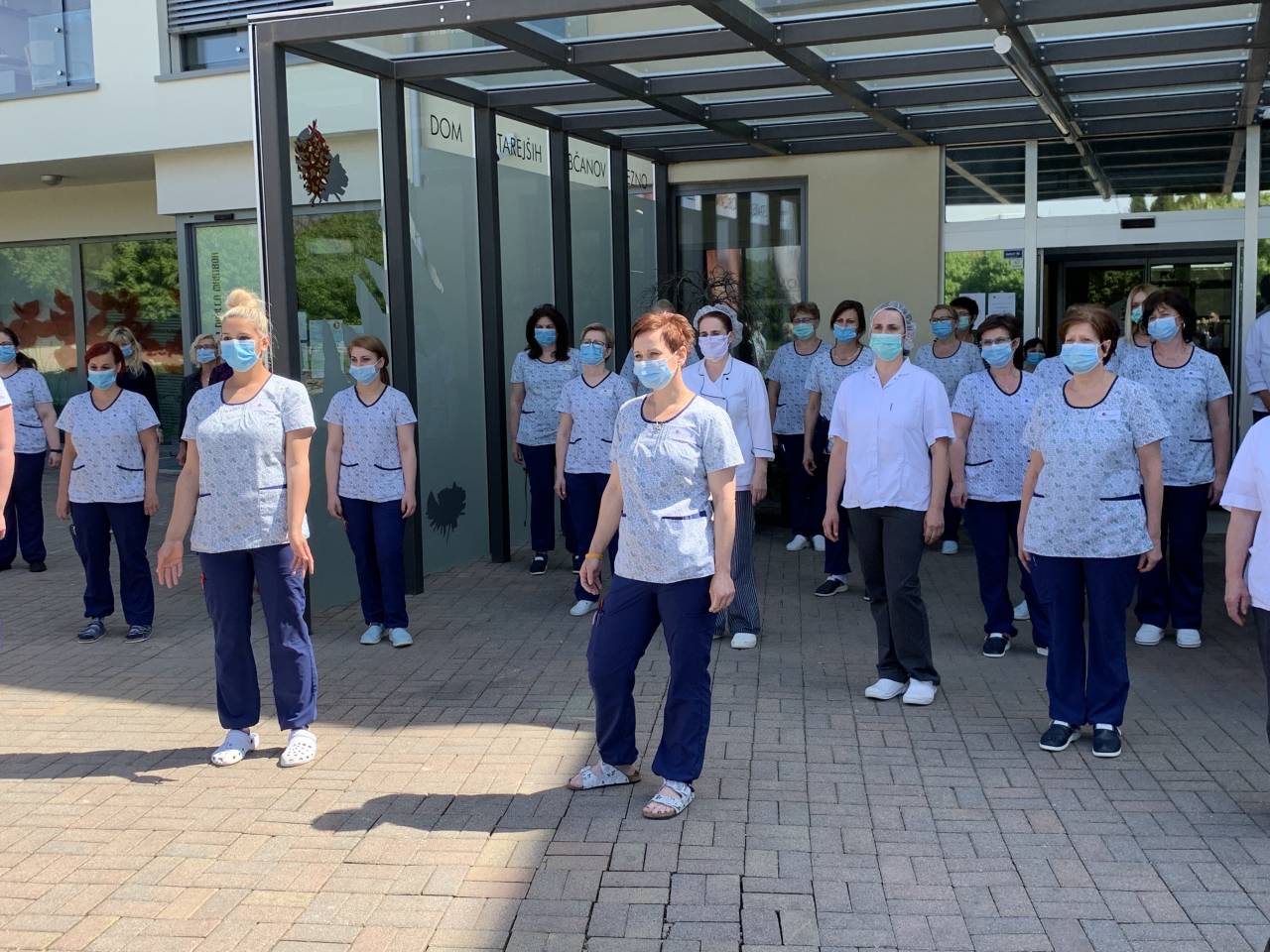 Na pobudo Skupnosti socialnih zavodov Slovenije so zaposleni v domovih za starejše in posebnih zavodih danes ob 13.30 za petnajst minut zapustili prostore domov. Zahtevali so »konec samovolje pristojnih, neustreznih, nestrokovnih in nedoslednih navodil ter sistemske diskriminacije starejših«.