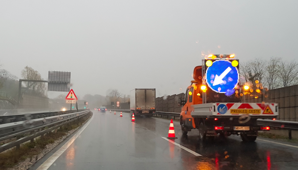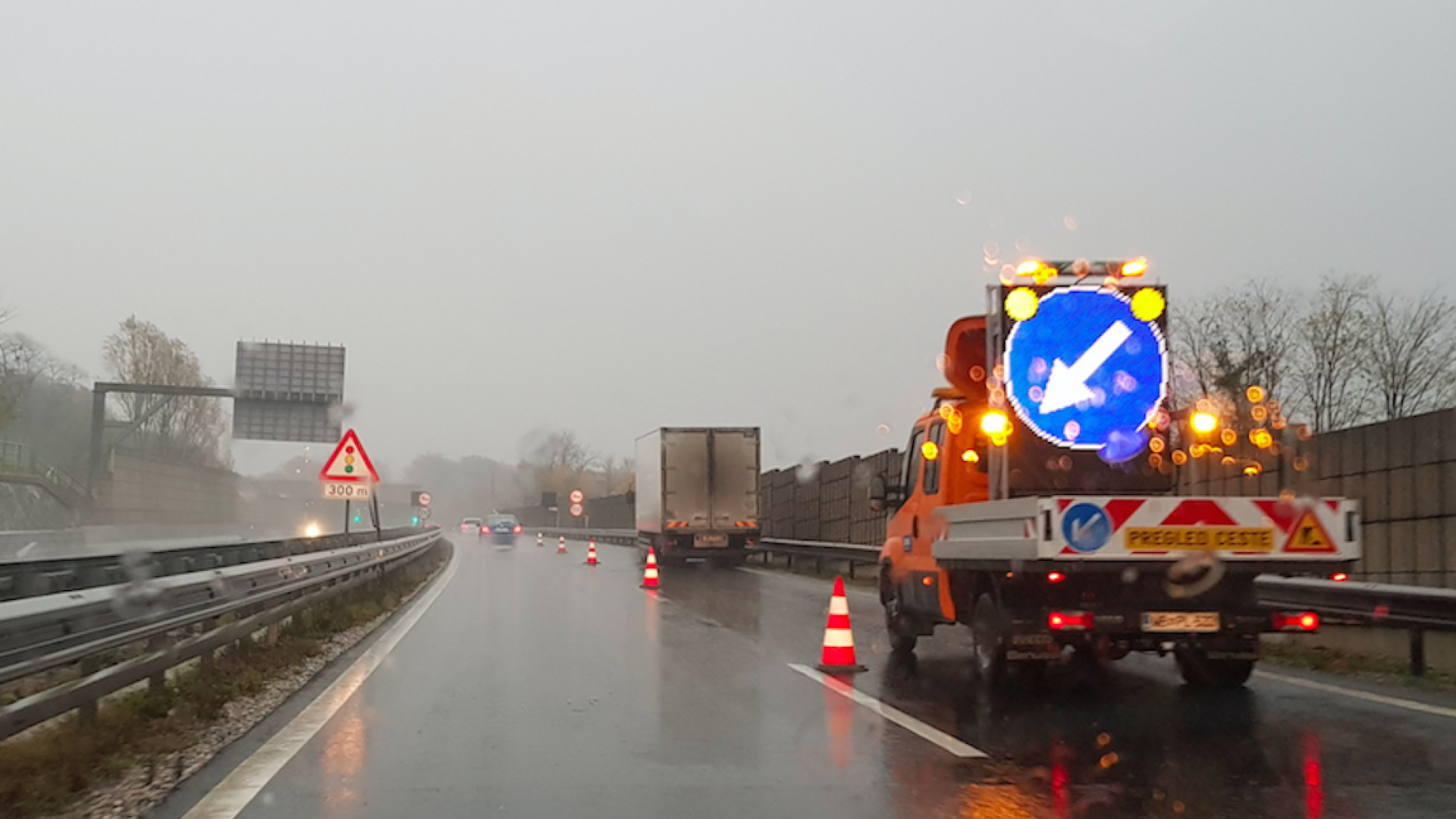 Na pomurski avtocesti je pred pokritim vkopom Močna zaradi okvare tovornega vozila zaprt vozni pas proti Lendavi.