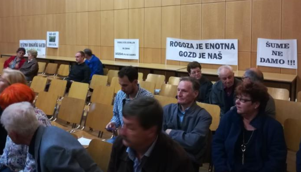 Včeraj popoldne se je v prostorih Kulturnega doma v Hočah zbrala nepregledna množica ljudi, ki so čakali na odgovore predstavnikov občine in Magne glede okoljevarstvenih problemov, sečnje Rogoškega gozda, nadomestnih kmečkih območij pa tudi zaposlitve. Zaznati je bilo precejšnje nezaupanje v predstavnike, zbrane na govorniškem odru, z eno izjemo – največji aplavz je požel mladi Simon Žlahtič iz Civilne iniciative Rešimo Rogoški gozd. Velja omeniti, da se prav nihče v dvorani, ki je zastavljal vprašanja, ni strinjal s sečnjo gozda. Ne nadomestnica direktorice zavoda za zaposlovanje, ne poslanec, ne inženir strojništva, ki prihaja iz vrst okoljevarstvene organizacije in prav nobeden izmed vrst krajanov.