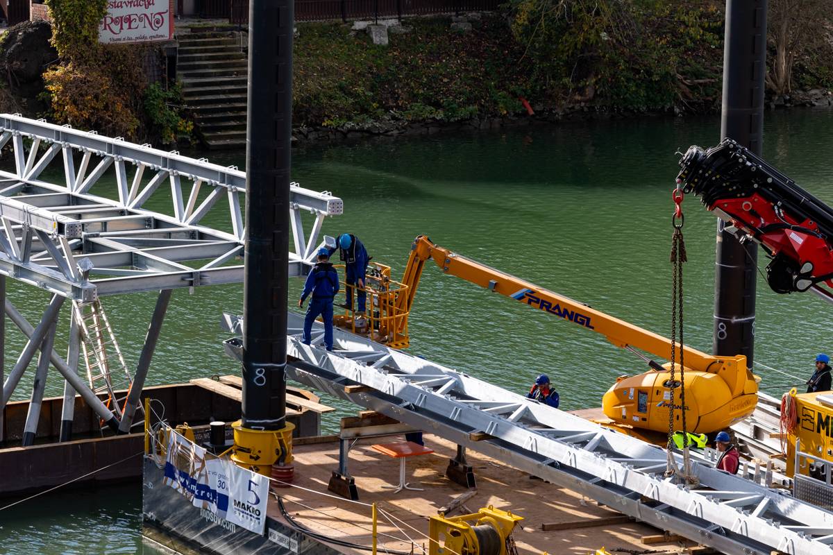 Številni Mariborčani in drugi mimoidoči se še vedno radovedno ustavljajo na mariborskem Glavnem mostu in opazujejo dela, ki jih izvaja Makro 5 gradnje, za novonastajajočo brv Lent - Tabor.