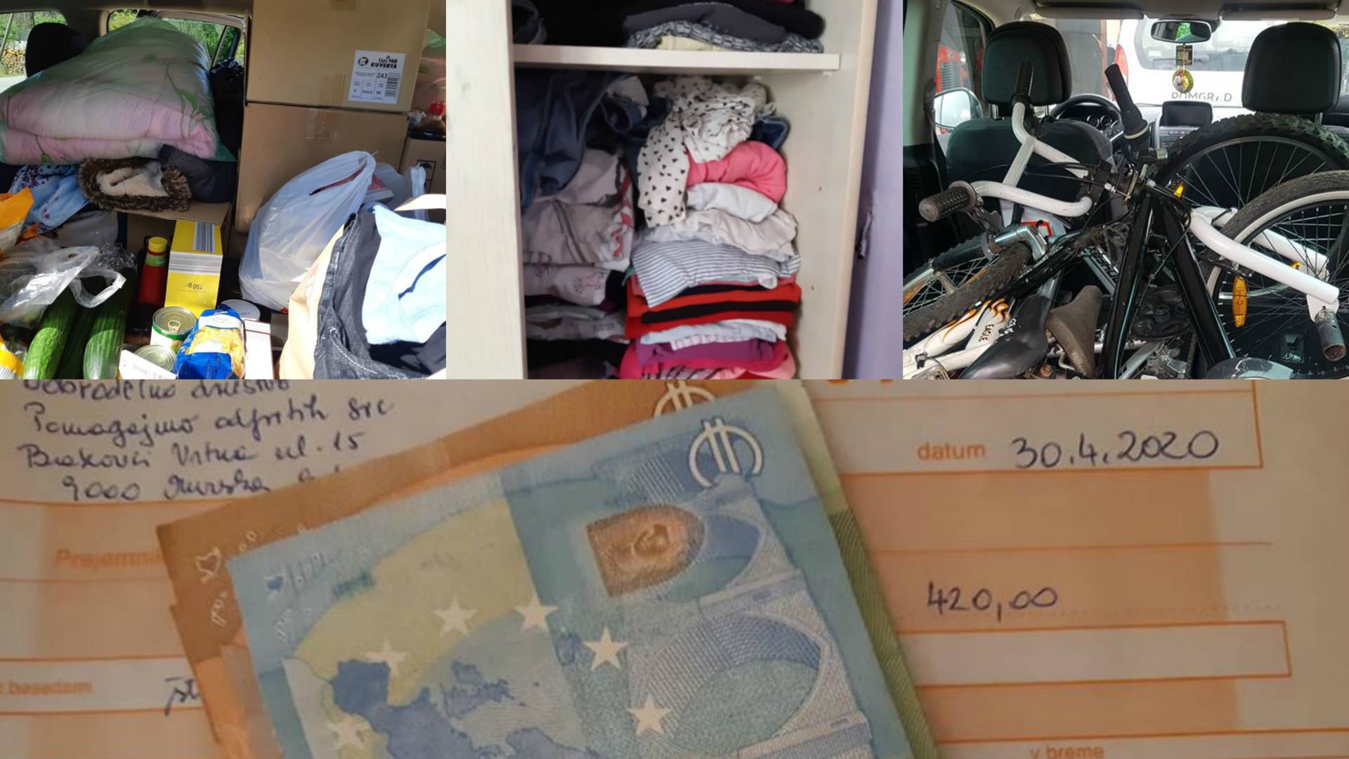 Srčna in velika HVALA vsem, ki ste se odzvali tako hitro, pripeljali oblačila, hrano, podarili kolesa, higienske potrebščine in računalnika. HVALA.