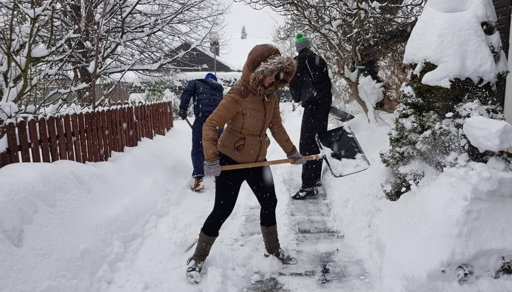 Ob tem pa tudi spoznajo številne zanimive ljudi, ki se zabavajo, pa tudi kakšno ušpičijo. Tisti, ki pravi čas ne poprimejo za lopato, pa so hitro kaznovani. Mi smo izostanek od kidanja snega pošteno plačali – s pristankom v snegu.