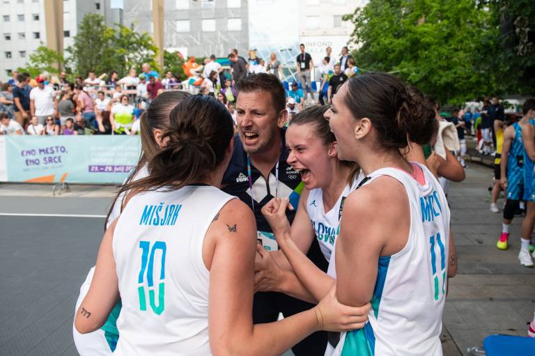 Košarkarsko tekmo trojk med moškima mladinskima reprezentancama Slovenije in Litve si je že ogledala, zvečer bo obiskala še košarkarsko tekmo med ženskima mladinskima reprezentancama Slovenije in Francije, nato pa še rokometno tekmo med slovensko in poljsko žensko mladinsko reprezentanco.