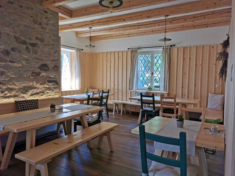»Pri obnovi nam je svetovala priznana slovenska arhitektka Maruša Zorec, po rodu Rušanka. Veseli smo sodelovanja z nekom, ki ima tako zelo izjemen občutek za ohranjanje kulturne dediščine, obenem pa z nekom, ki je odprt za pridih 'modernega', kar je bila naša želja. Menimo namreč, da se s preteklostjo dobro ujame sedanjost, v tisti pravšnji in dobri meri. Veliko dela in truda smo v obnovo vložili sami, pri tem pa so nam pomagali predvsem lokalni mojstri z različnih področij, s katerimi smo sodelovali že pri projektih, ki se tičejo naše kmetije,« poudarijo mladi voditelji koče.