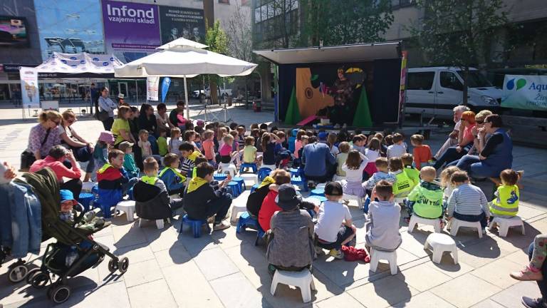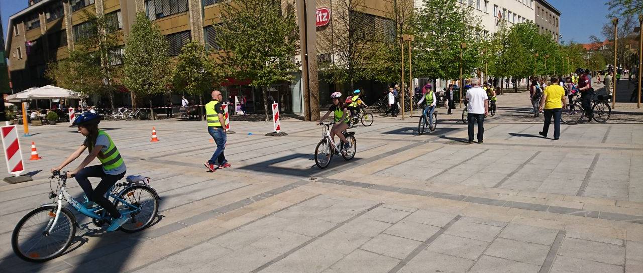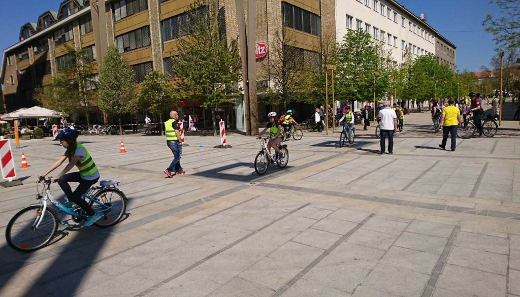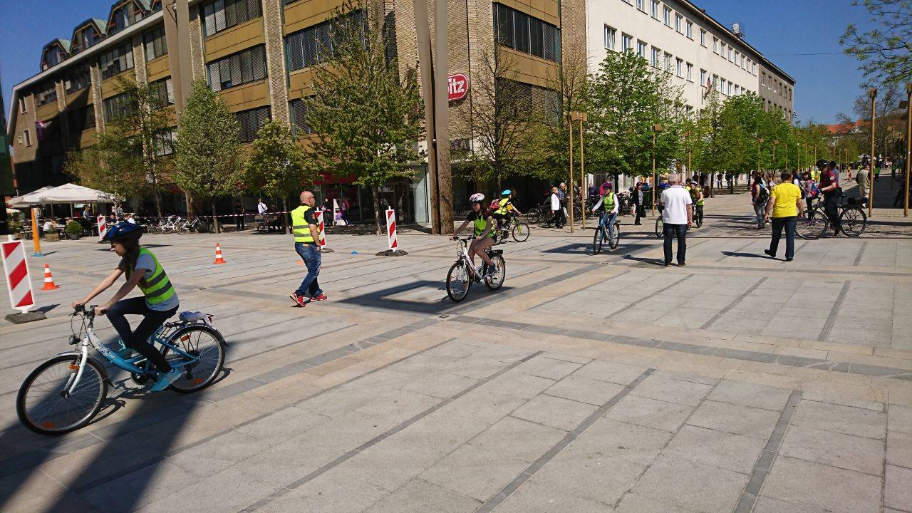 Po Trgu Leona Štuklja so se osnovnošolci popeljali s kolesom.
