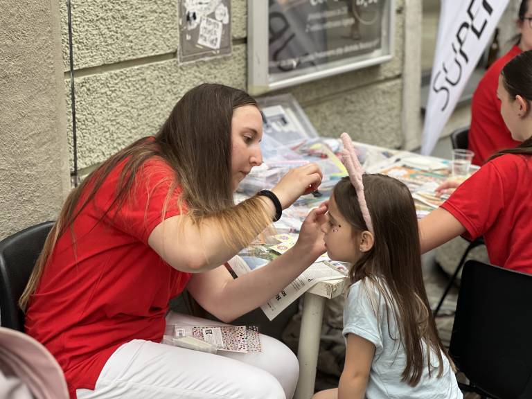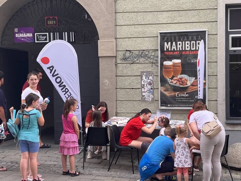 Po mestnem parku so delili jabolka, v Vetrinjskem dvoru so delali poslikave, začasne tattoo-je in poslikave s kano, zvečer pa so pred dvorano Union delili reklamni material.