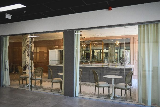 Vhod v lokal je omogočen iz trgovske etaže in zunanje ploščadi, kar omogoča dober dostop za obiskovalce.