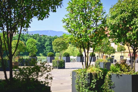 »Na ploščadi pred slaščičarno je možen najem zunanjega vrta, ki ga krasi drevesna konfiguracija v koritih, ki nudijo gostom senco in zasebnost,« pravijo pri Mestnih nepremičninah.