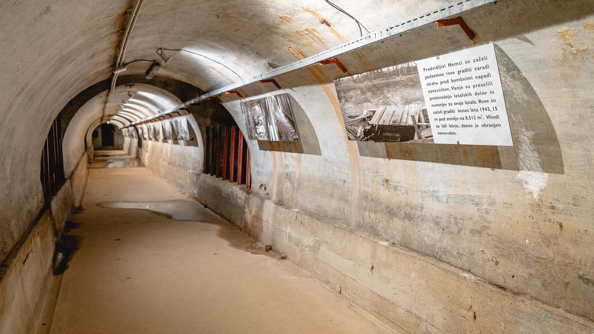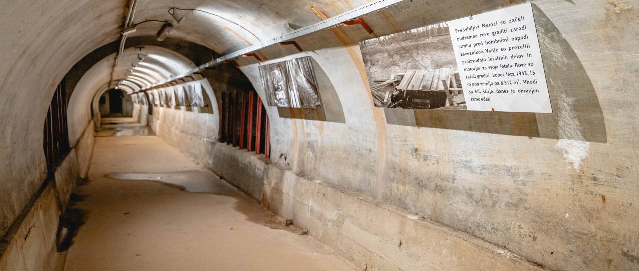 Leta 1943, na vrhuncu druge svetovne vojne, so Nemci v strahu pred zavezniškimi napadi glavnino proizvodnje tovarne letalskih delov premestili pod zemljo. Začeli so izkopavati rove in nastala je mreža podzemnih hodnikov s skupno površino 8512 kvadratnih metrov.