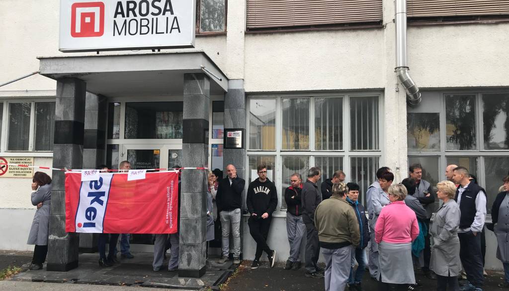 Okoli sto zaposlenih v družbi Arosa Mobilia iz Limbuša pri Mariboru je danes zjutraj začelo stavkati.