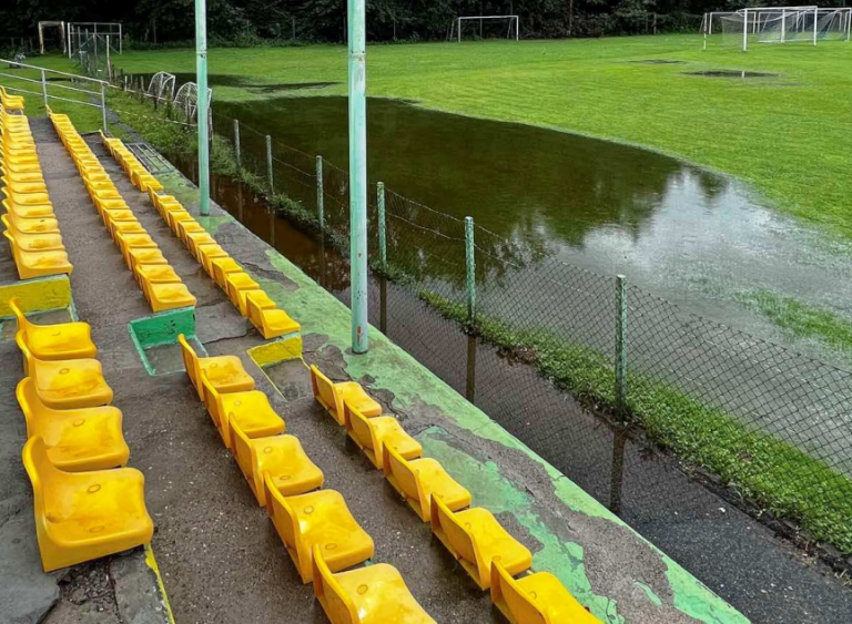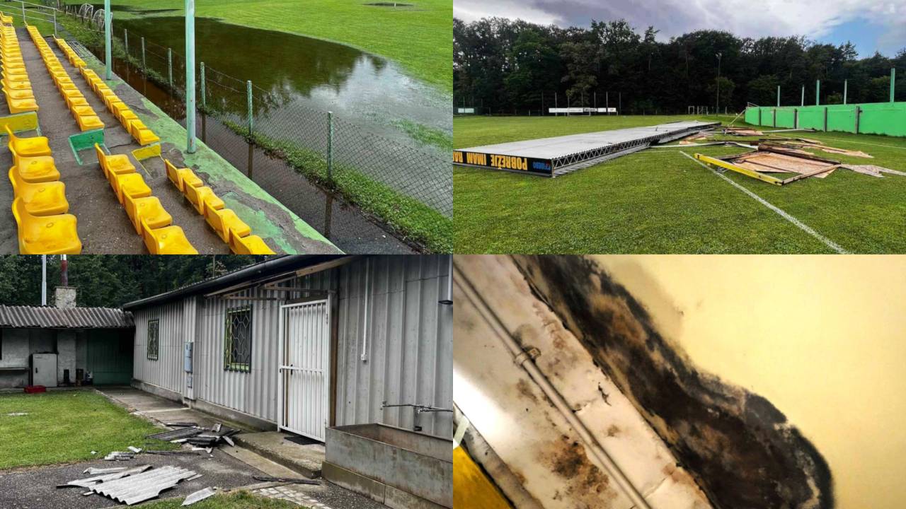 Voda je namreč uničila travnato površino, električne napeljave, opremo in inventar, s posledicami pa se nogometni klub še vedno sooča.
