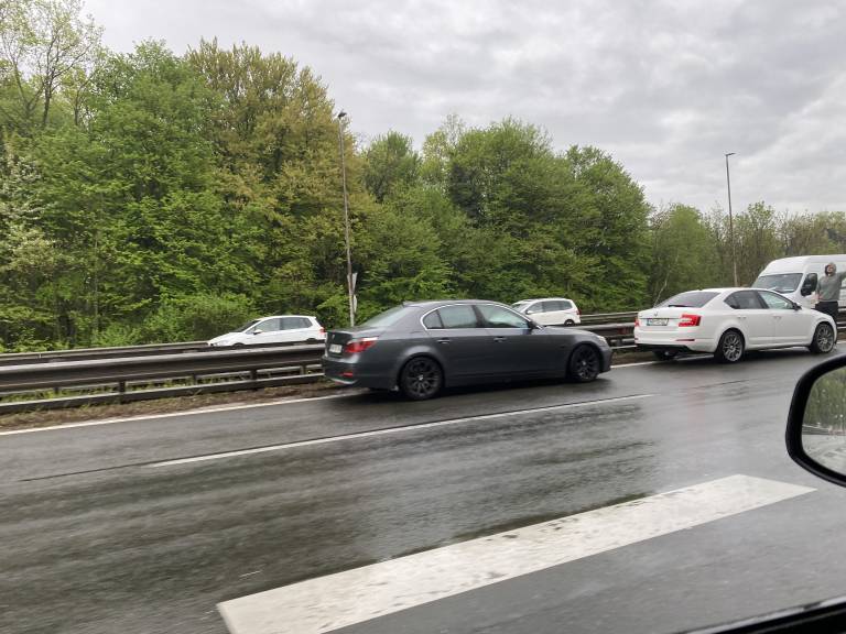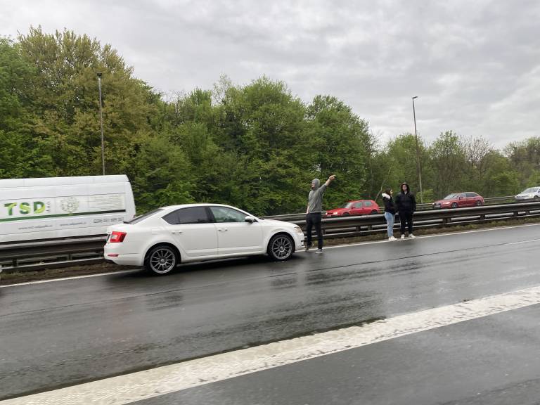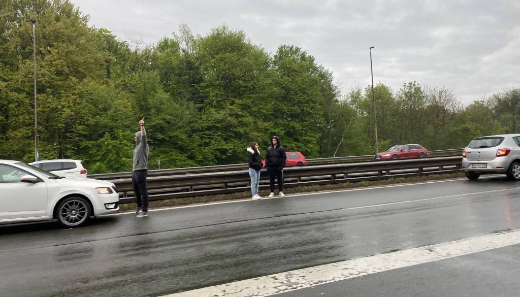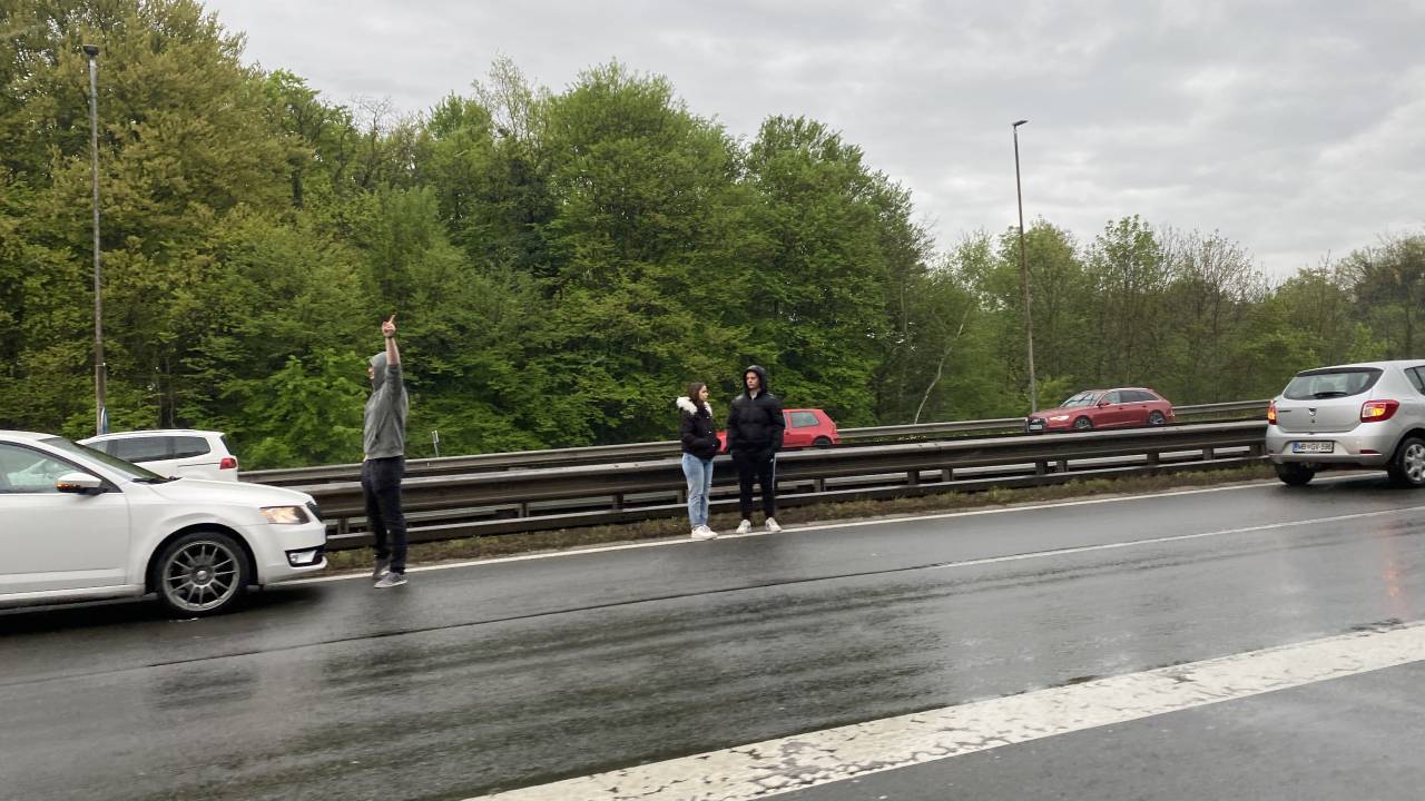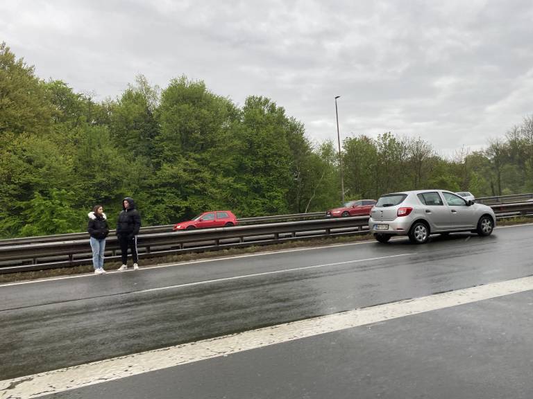 Danes so vozniki na mariborski obvoznici opazili nenavaden prizor – na hitri cesti, na odseku med izvozoma za Tezno in Tabor, so stala vozila, ob njih pa ljudje kar na voznem pasu.