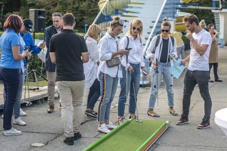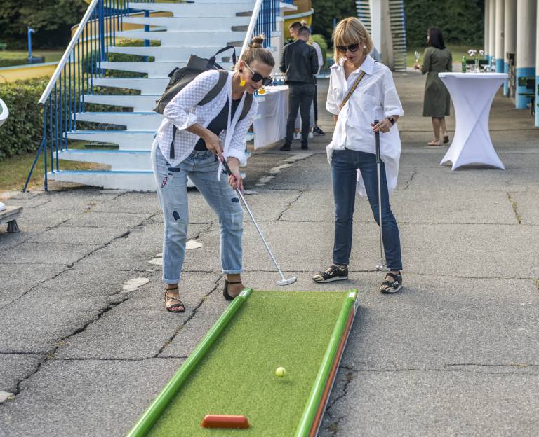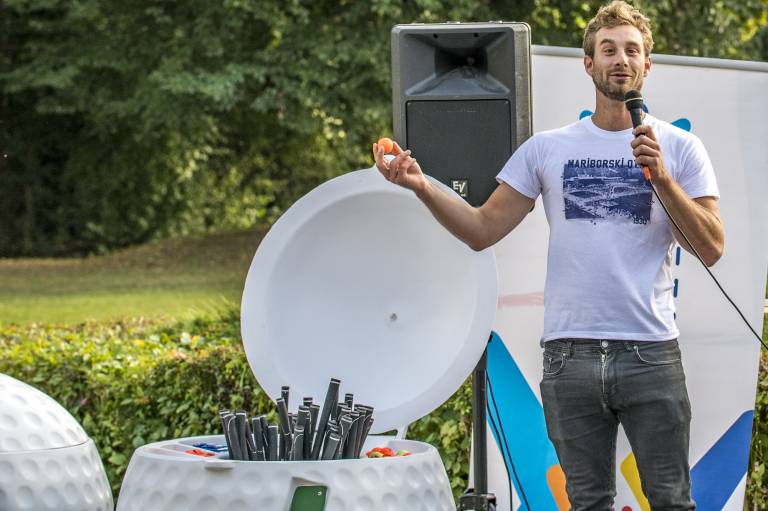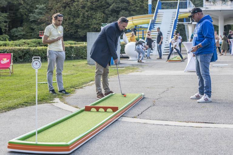 Znane Mariborčanke in Mariborčani so se danes na Mariborskem otoku pomerili v mini golfu. Preverite, kakšni so bili njihovi udarci.