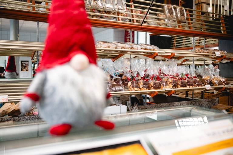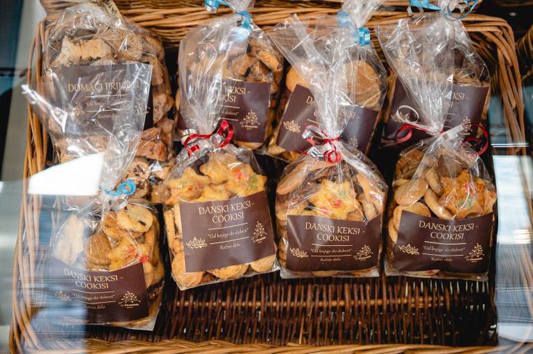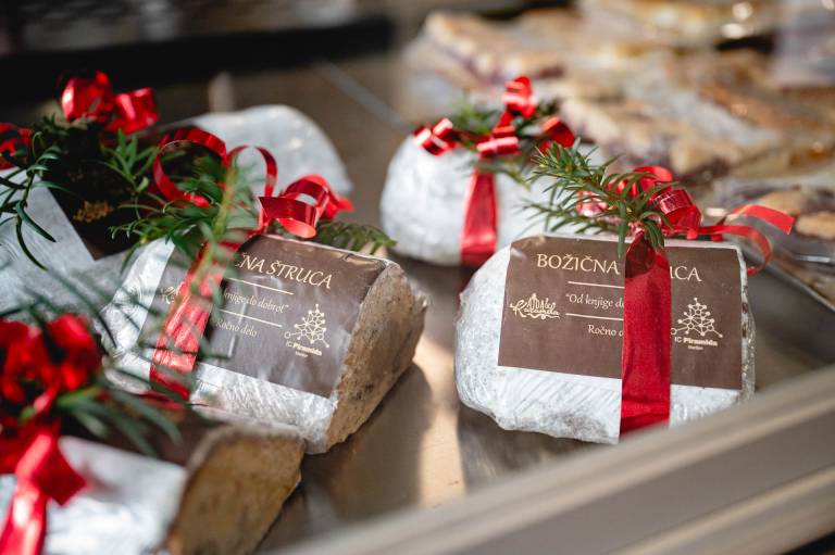 Prisotna je tudi sezonska ponudba, v prazničnem času je najbolj vroča roba seveda potica, božična štruca, piškoti in podobno.