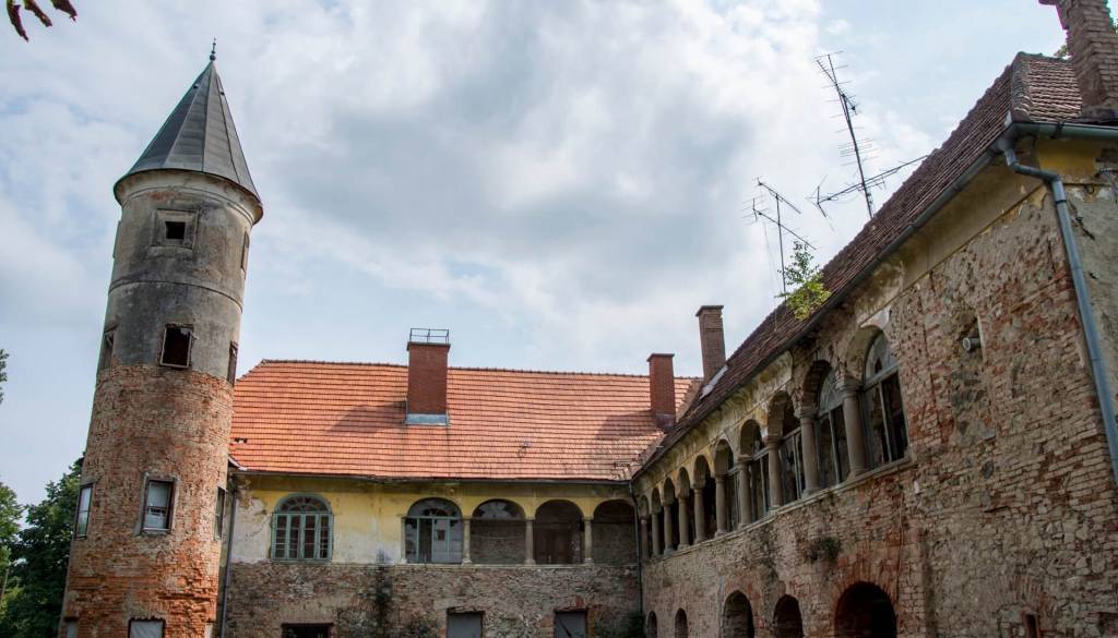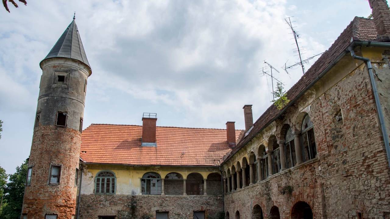 Da stara graščina ni v najboljšem stanju, je očitno že po manjkajočih strešnikih in razbitih oknih, notranjosti pa ne kaže nič bolje, saj odpada omet, tla pa prekrivata prah in umazanija.