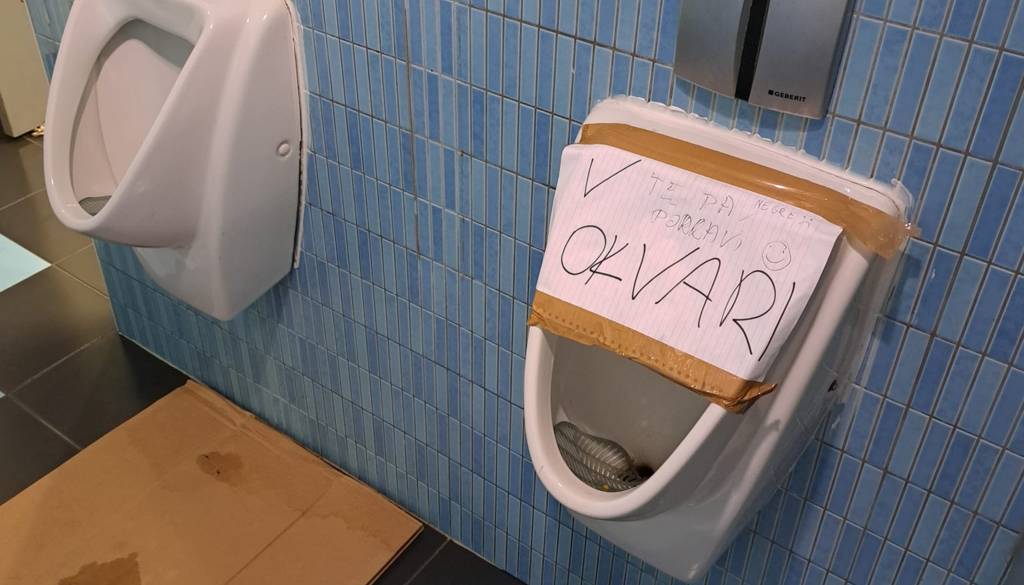 Naštel je, kaj vse je narobe na moški strani javnih sanitarij. Kot pravi, ne dela pisoar, prav tako ne dela sušilec za roke, manjkajo predelne stene, prisotna je vlaga, na tleh so kartoni, kar izgleda zelo »neokusno«.