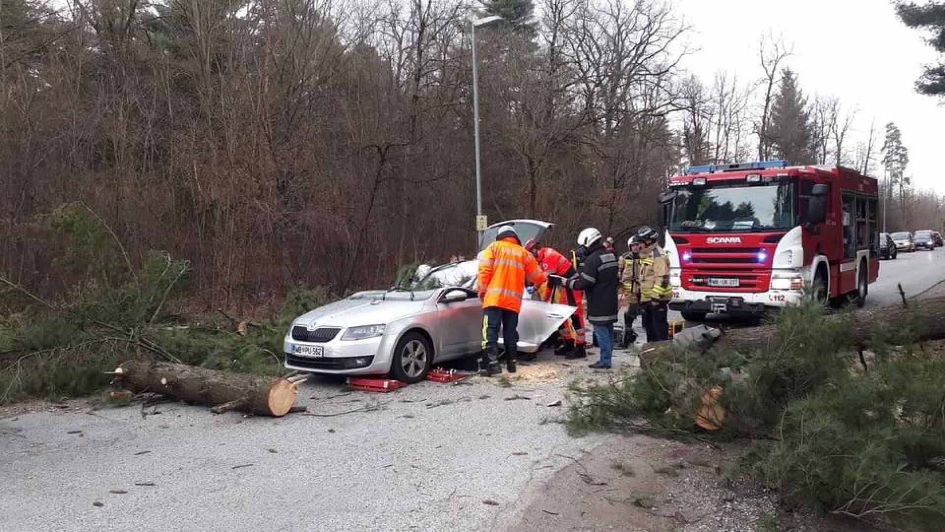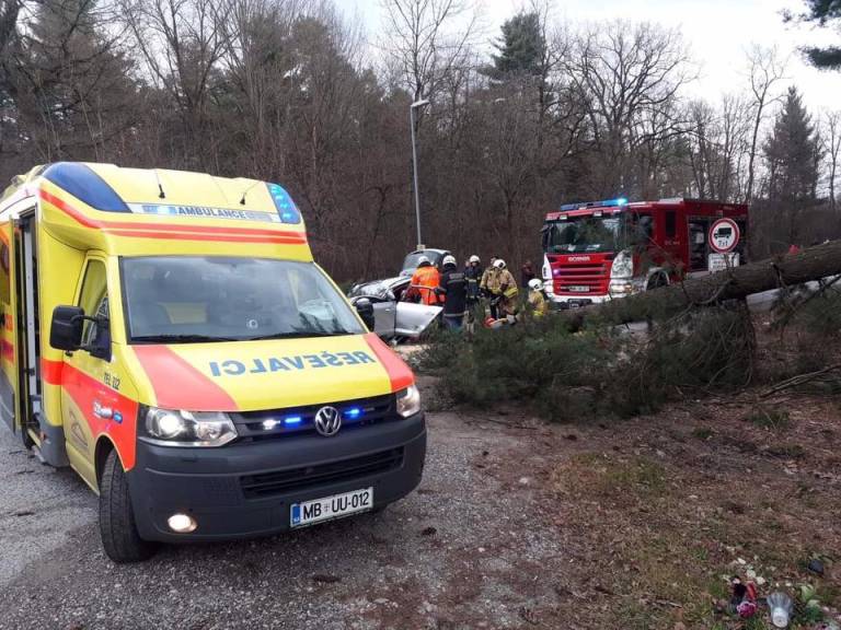 Gasilci Prostovoljnega gasilskega društva Talum Kidričevo so drevo razžagali in odstranili ter rešili poškodovanca iz vozila, ki so ga reševalci Nujne medicinske pomoči Ptuj prepeljali v UKC Maribor.