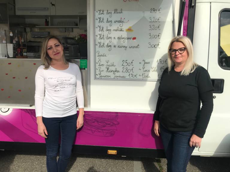 Zdaj že nekdanji medicinski sestri Nika Slišković in Maja Brodnik ponosno odpirata velika vrata svojega vozila z ulično hrano.
