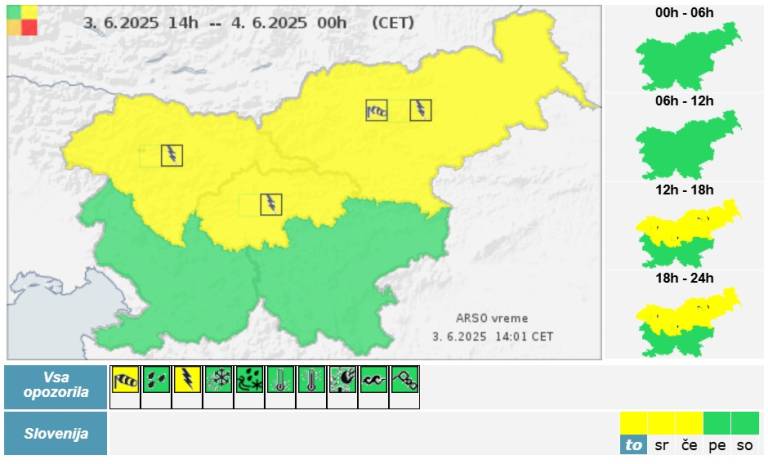 Agencija Republike Slovenije za okolje je za sever države izdala rumeno opozorilo pred nevihtami.