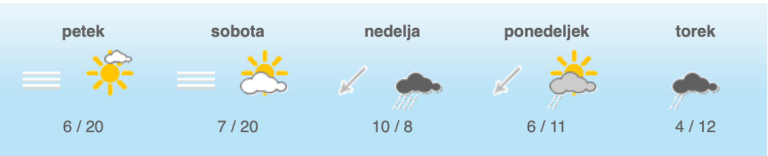 V noči na nedeljo se bo povsod pooblačilo, pričelo bo deževati. Ob morju bo sprva tudi kakšna nevihta. Začel bo pihati severovzhodnik, na Primorskem burja.