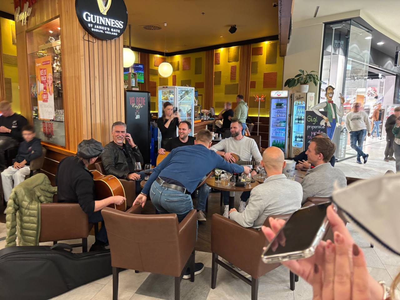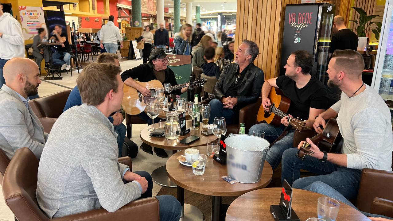 Jan je skupaj s prijatelji kar v lokalu zapel nekaj svojih uspešnic in ustvaril nepozabno atmosfero, ki je pritegnila številne mimoidoče.