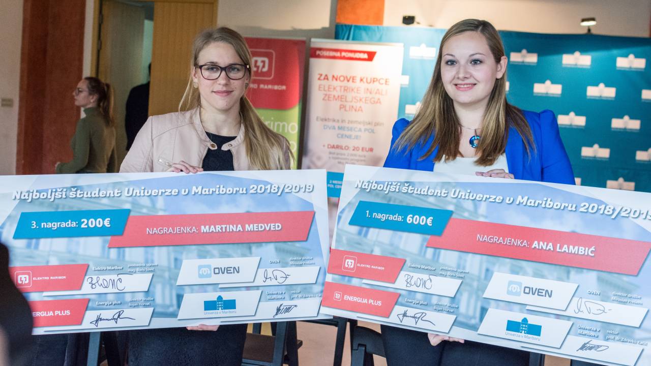 Najboljša študentka Univerze v Mariboru je prejela denarno nagrado v višini 600 evrov, ki jo podarja Elektro Maribor, drugo uvrščeni je podjetje Energija plus podarilo nagrado v vrednosti 400 evrov, med tem ko je bila tretje uvrščena s strani podjetja OVEN Elektro Maribor nagrajena z 200 evrov.