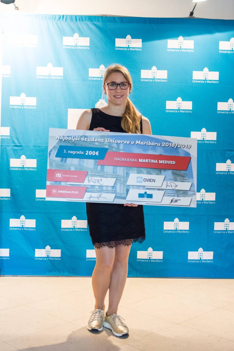 Tretje mesto je dosegla Martina Medved, študentka 6. letnika enovitega magistrskega študijskega programa Splošna medicina na Medicinski fakulteti Univerze v Mariboru. Študentka se uvršča med 5 odstotkov najboljših študentov v svoji generaciji in ima povprečno oceno 9,55. Opravljala je znanstveno-raziskovalno dejavnost na Kliniki za pediatrijo in za to tudi prejela Dekanovo priznanje za raziskovalno nalogo.