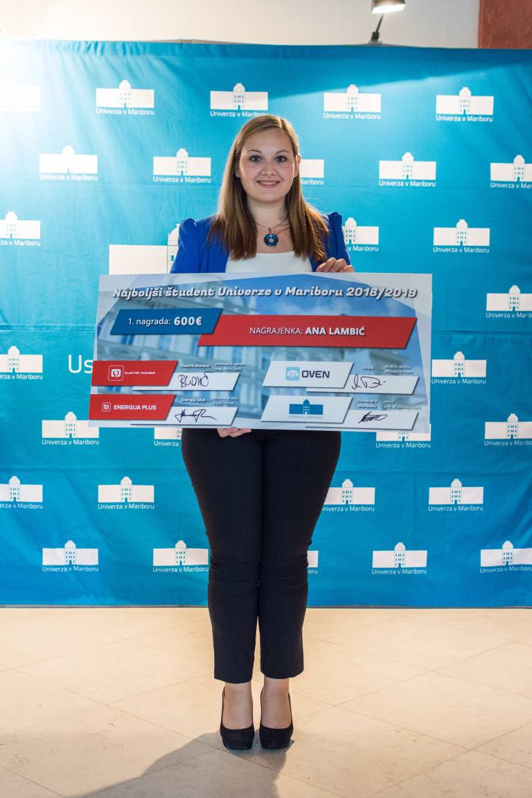 Najboljša študentka Univerze v Mariboru je na podlagi ocene strokovne komisije postala Ana Lambić, študentka 1. letnika magistrskega študijskega programa Organizacija in management kadrovskih in izobraževalnih sistemov na Fakulteti za organizacijske vede Univerze v Mariboru.