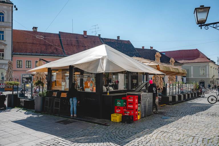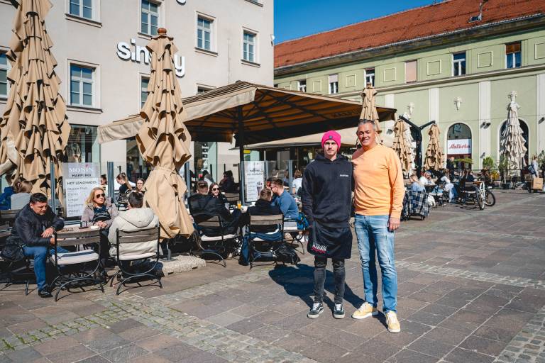 Kavarna Marpurgi stoji na Grajskem trgu že 22 let, od tega jo že kar dve desetletji upravlja Damjan Potež, pri delu mu redno pomaga tudi žena, sin in še kdo od družinskih članov.