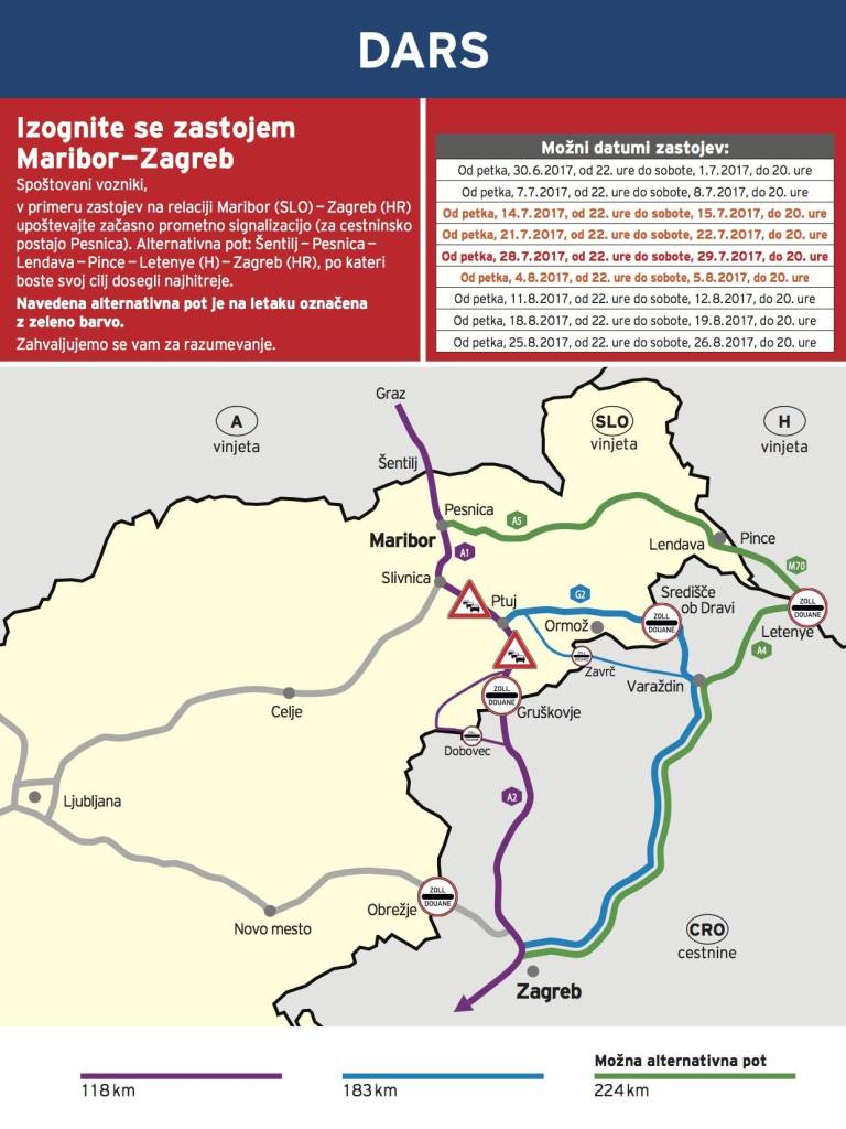 Zaradi zapore ptujskega mostu čez Dravo in poostrenega mejnega nadzora, ki je posledica evropske uredbe, so letos pričakovani zastoji na podravski avtocesti A4 v smeri proti Hrvaški. To še zlasti velja za odsek med Draženci in Gruškovjem, kjer poteka izgradnja 13-kilometrskega avtocestnega odseka. Gradnja odseka bo predvidoma končana konec leta 2018.