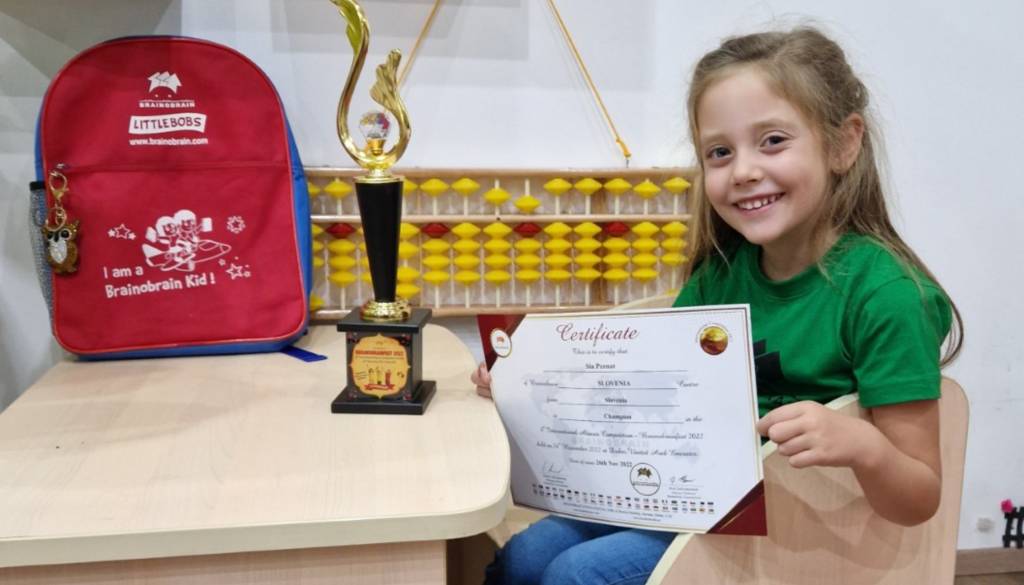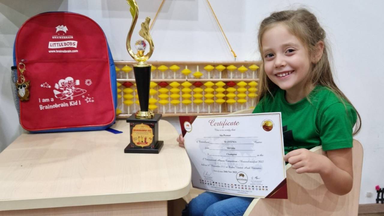 5-letna Štajerka je na mednarodnem tekmovanju Brainobrain v hitrostnem računanju v Dubaju osvojila najvišjo možno nagrado – Champion pokal.