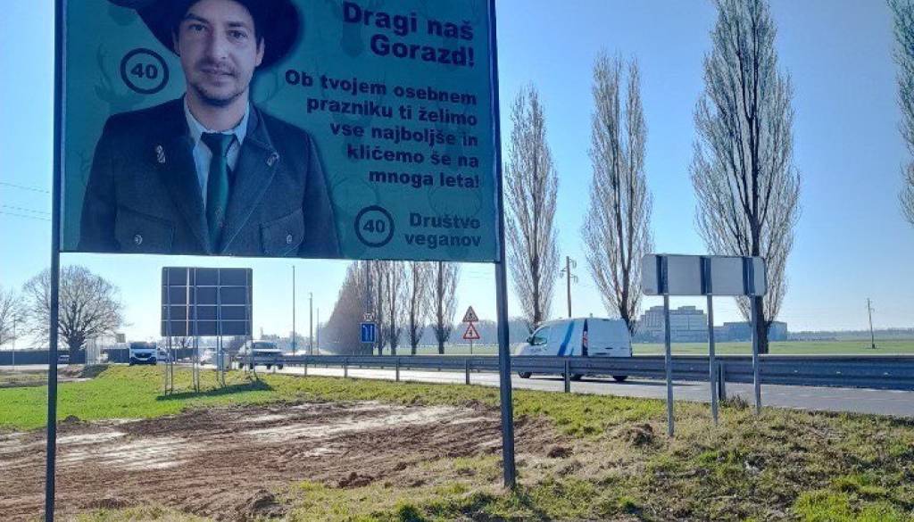 Med vožnjo iz Murske Sobote proti Rakičanu nam je v oči padel oglasni pano s čestitko za rojstni dan.
