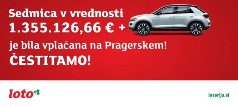 Sinoči je bil v 100. krogu izžreban glavni dobitek v vrednosti 1.355.126,66 evra, listek s srečnimi številkami pa je bil vplačan na Pragerskem.