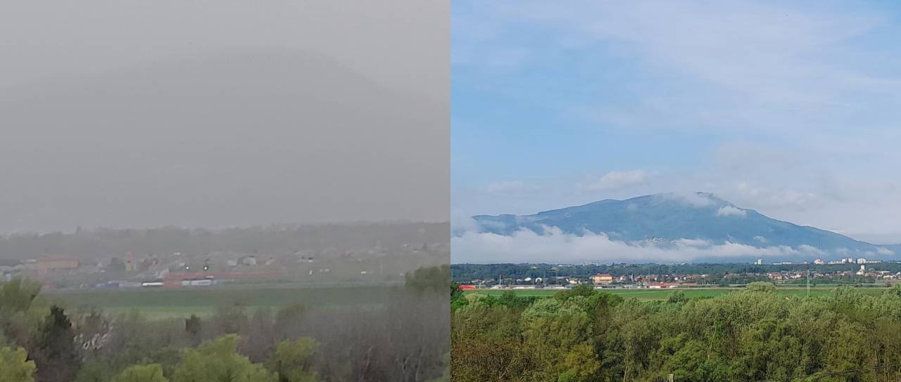 Puščavski prah je v ozračju vztrajal vse do ponedeljka, vidljivost je bila zelo slaba, tudi Pohorje se ni videlo z bližnjih hribov.