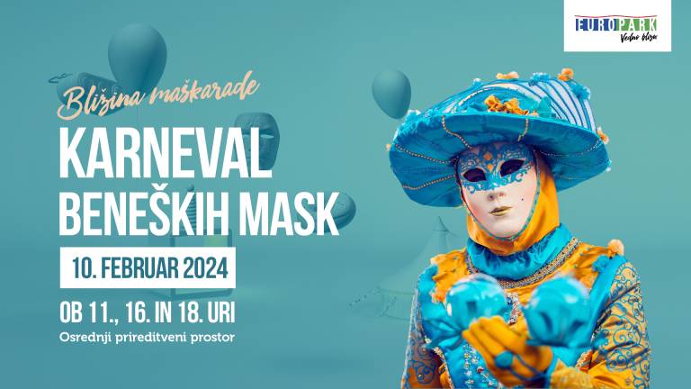 Če bi si jih radi ogledali od blizu, lahko to soboto obiščete mariborski Europark, kjer se bo na osrednjem prireditvenem prostoru ob 11., 16. in 18. uri predstavilo kar 12 atraktivnih in izvirnih beneških mask.