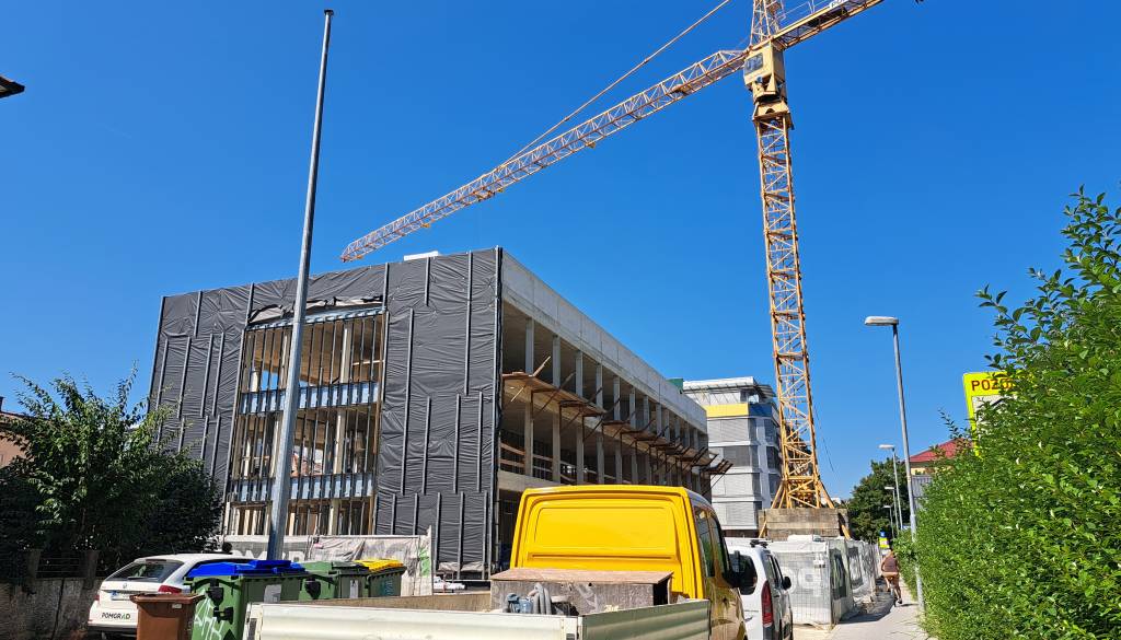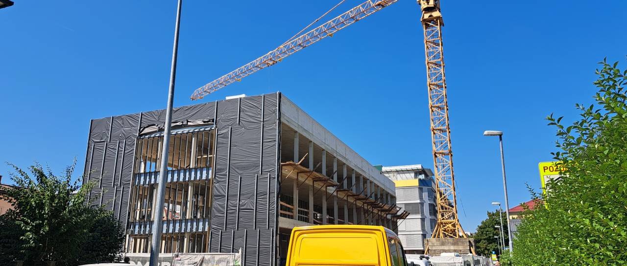 Gradbena dela, katerih izvajalec je podjetje Pomgrad, so zdaj dosegla pomemben mejnik – zaključilo se je betoniranje stropne plošče nad zadnjim nadstropjem. Trenutno se izvajajo fasaderska dela, v tem tednu se začnejo krovska dela, poteka tudi izvedba inštalacij.